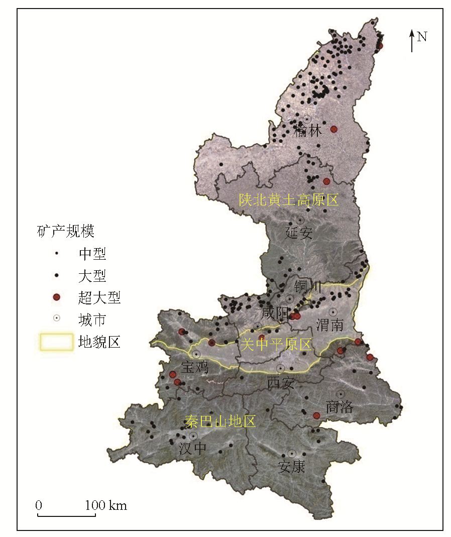 | Fig.1 Landform division and distribution map of mineral resources in Shaanxi Province |