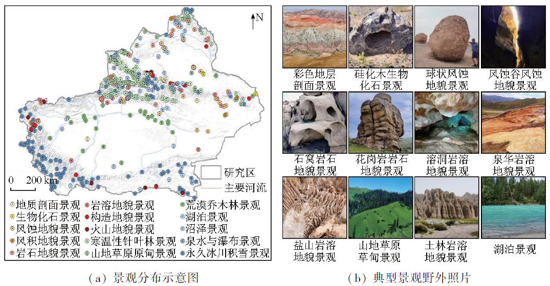 | Fig.1 Spatial distribution pattern and field photos of typical natural landscapes in the study area |