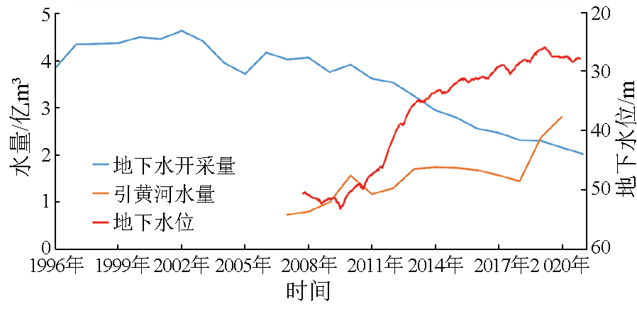 | 图7 太原市地下水开采量、“引黄入晋”引水量和地下水位 |