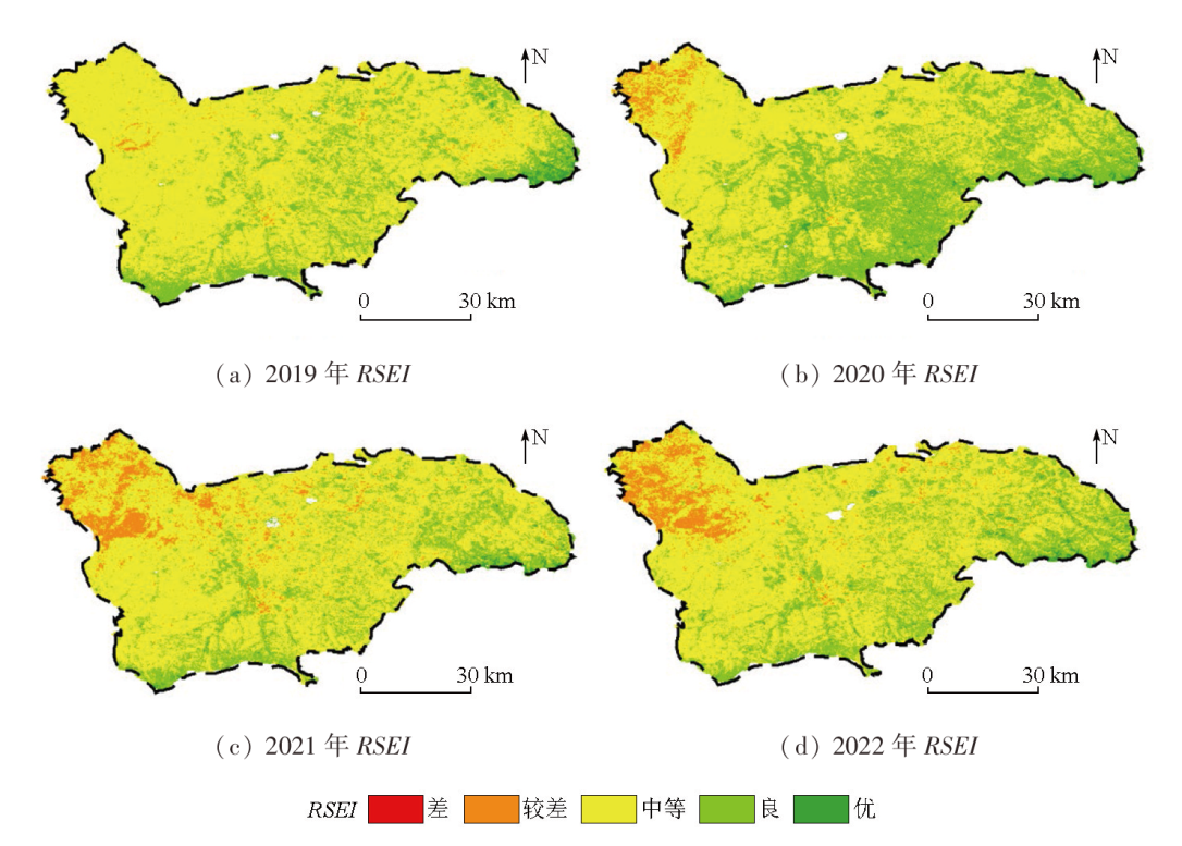 | Fig.3 Distribution of RSEI in the study area from 2019 to 2022 |