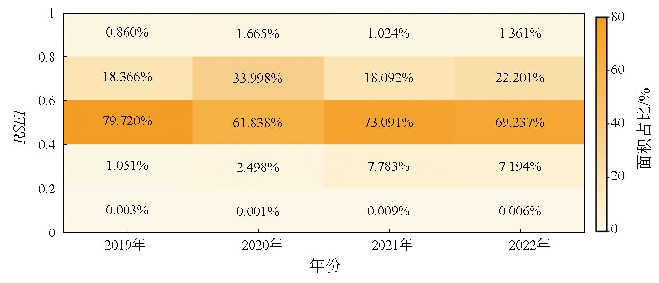 | 图4 研究区2019—2022年RSEI不同等级面积占比 |
