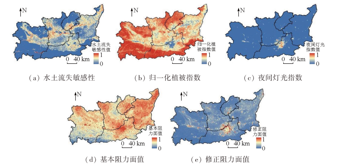 | 图4 生态敏感性评价和阻力面计算结果 |