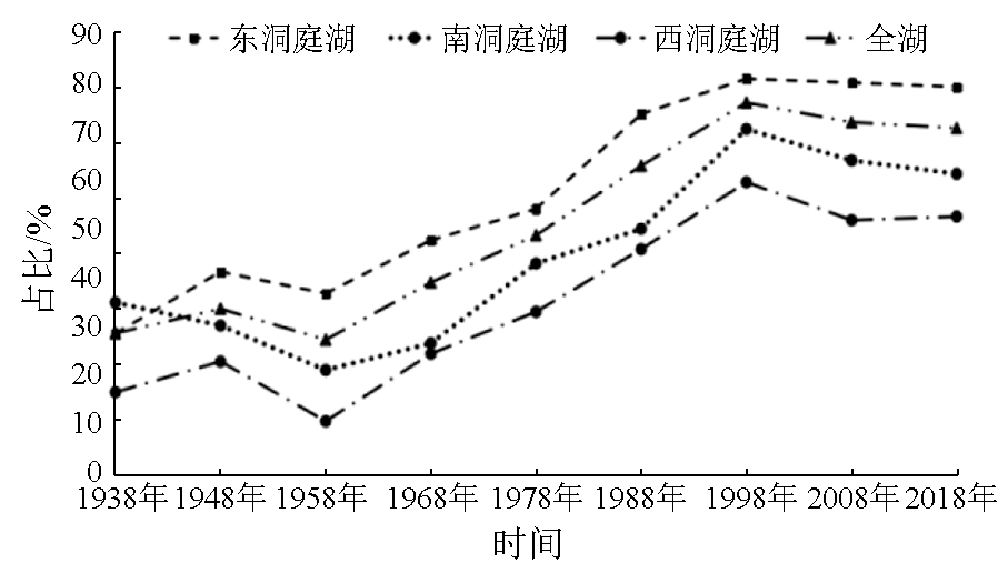 | 图3 1938年以来洲滩面积占比时序变化 |