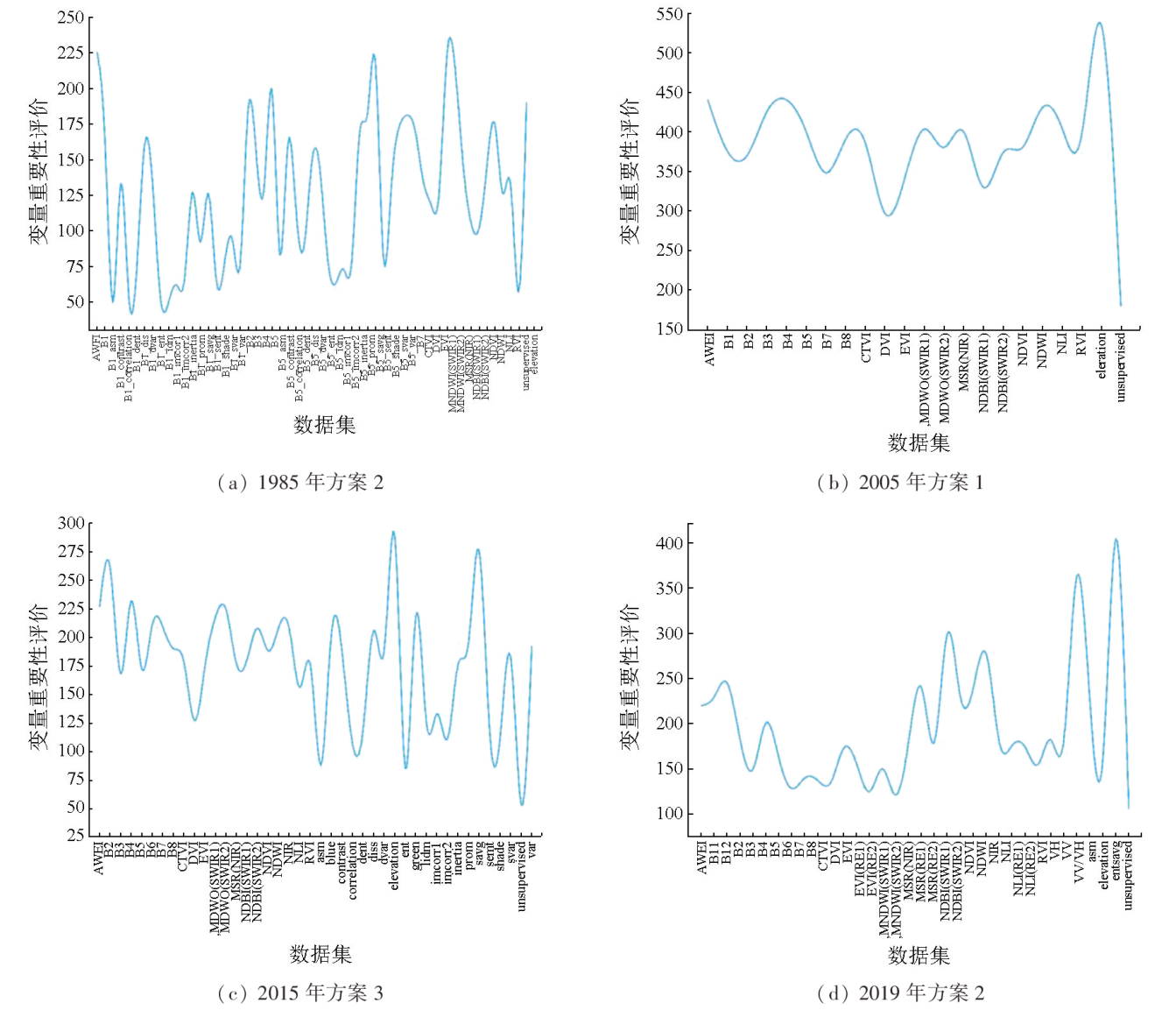 | Fig.3 Quantitative evaluation of the importance of different remote sensing data sets from 1985 to 2015 |