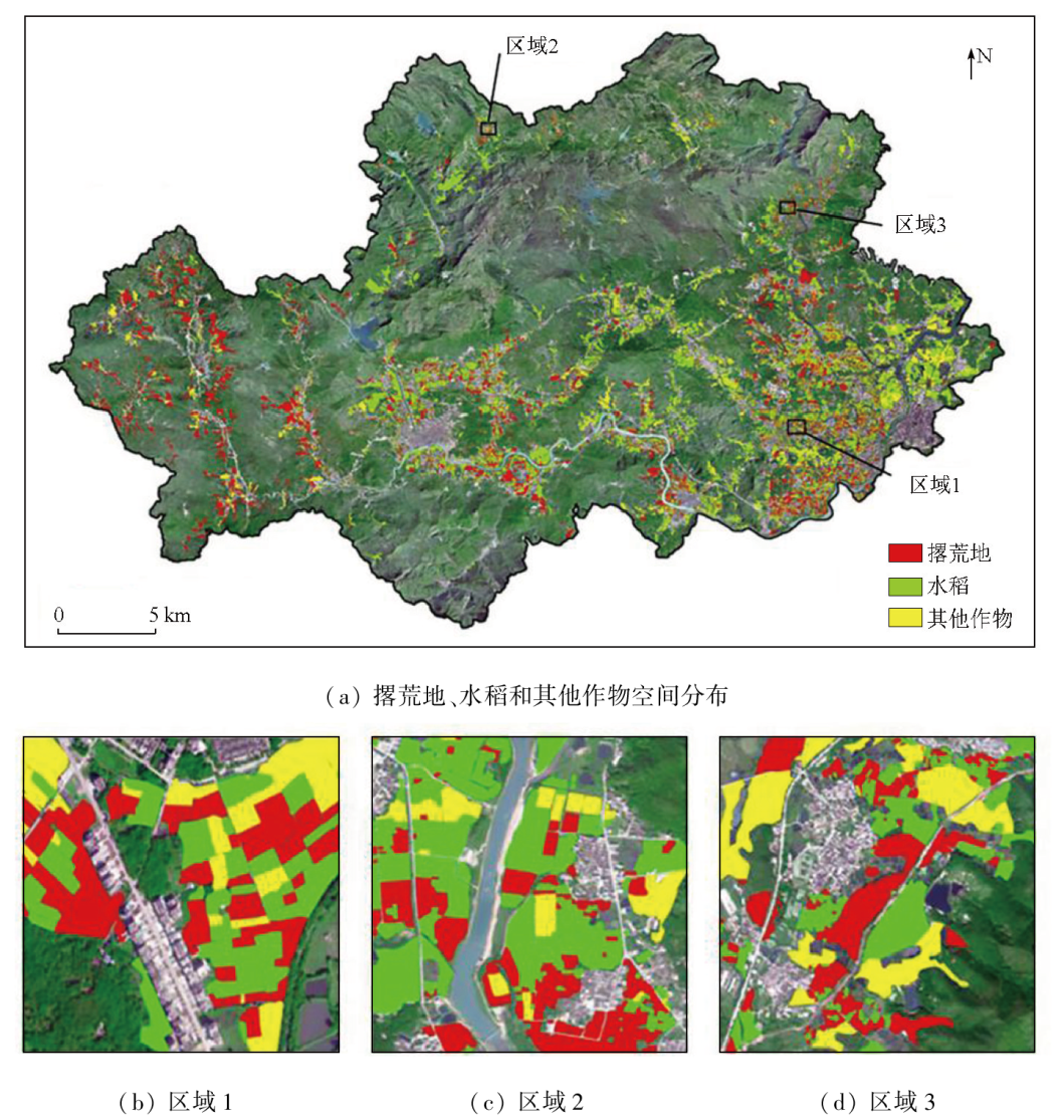 | 图8 撂荒地、水稻和其他作物提取结果 |