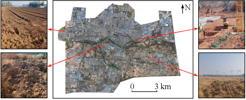 | Fig.1 Study area image and bare land survey examples |