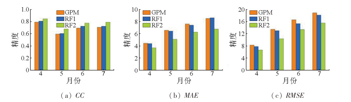 | Fig.4 Comparison of monthly precision of daily precipitation products |