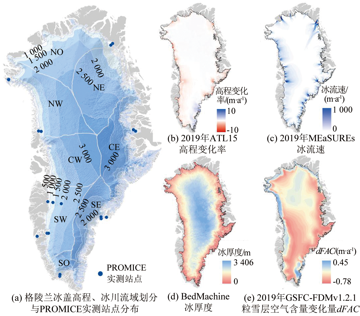 综合冰通量散度的格陵兰冰盖表面物质平衡遥感估算 |