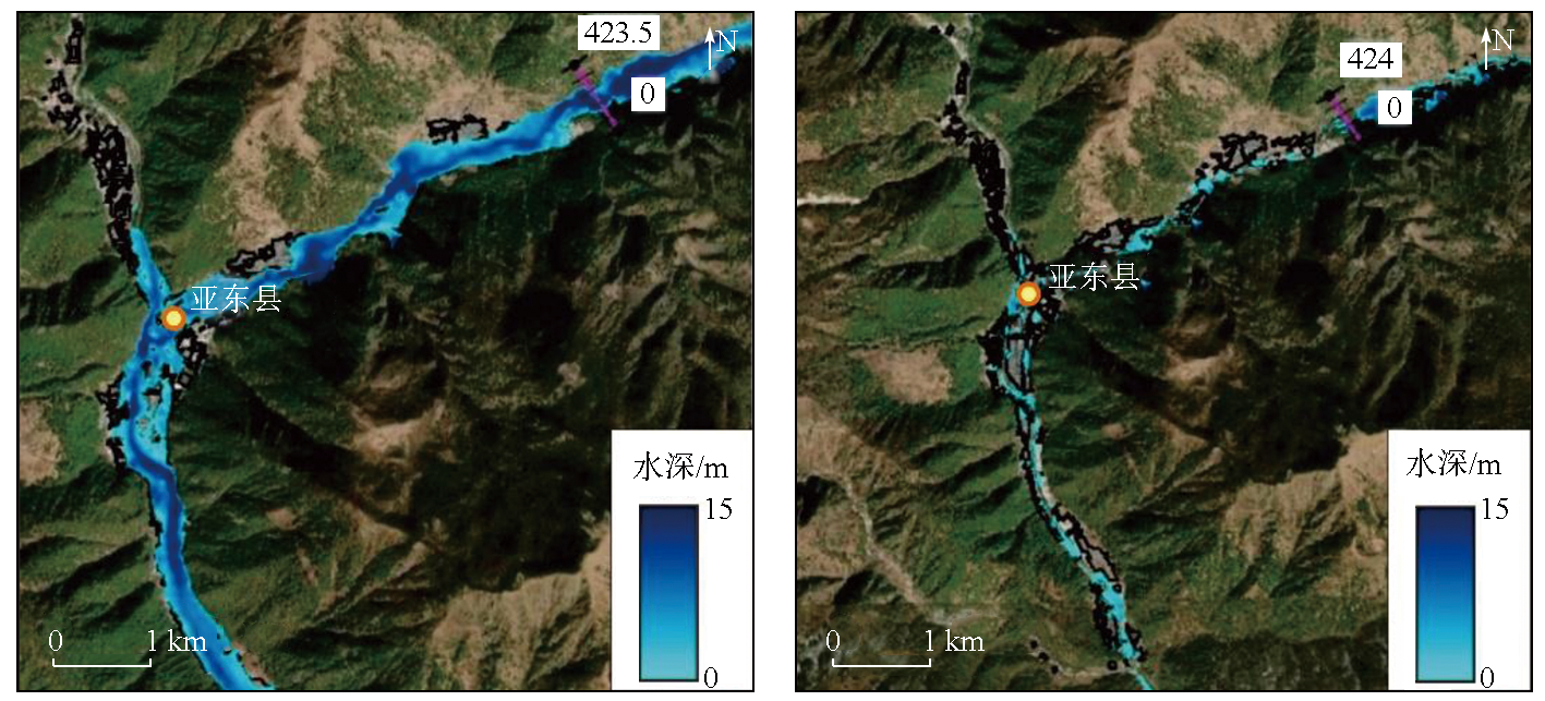 | 图10 亚东县县城及周边区域居民区水深分布模拟 |