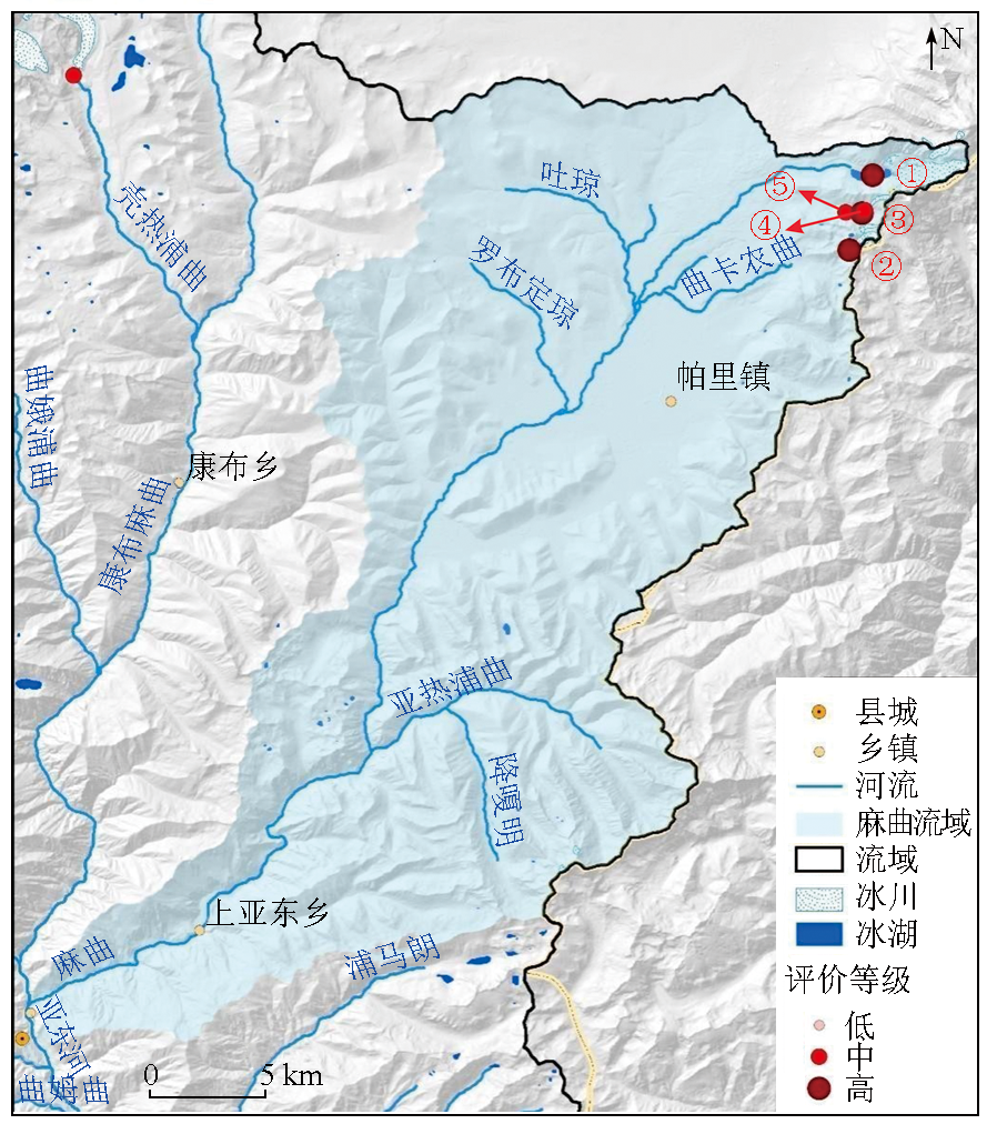 | 图5 麻曲流域危险性冰湖分布 |