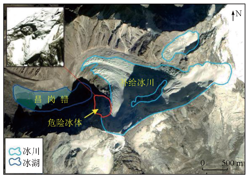 | 图6 昌岗错及其补给冰川高分遥感影像 |