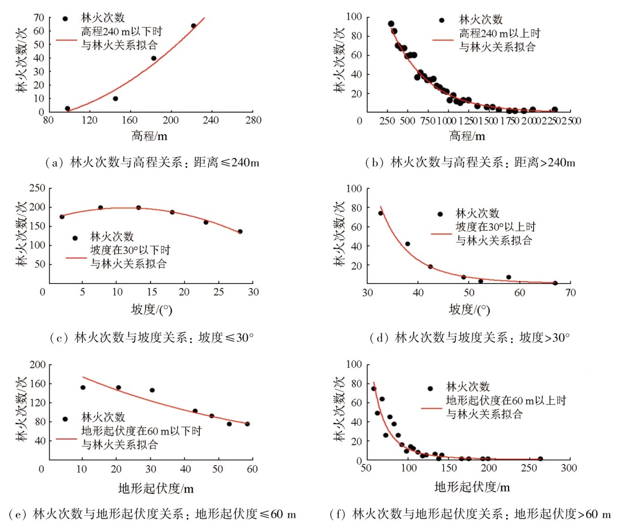 | 图2 林火次数与地形要素的关系 |