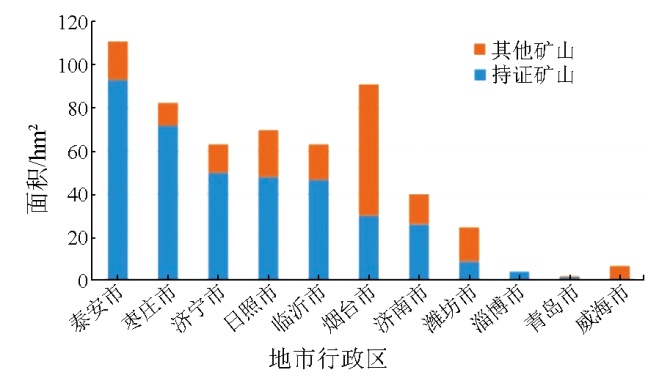 | 图4 山东省2021年各市持证矿山和其他矿山新增损毁土地面积 |