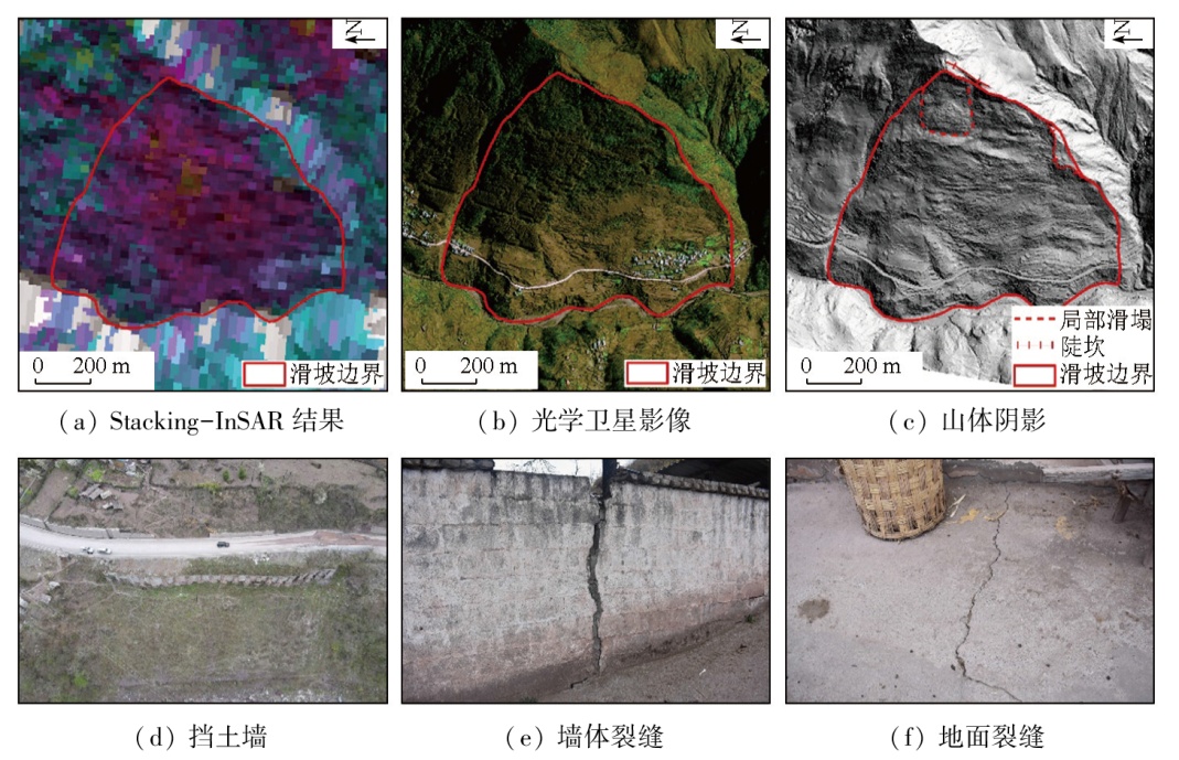 | 图10 柑子口滑坡综合遥感识别与现场调查照片 |