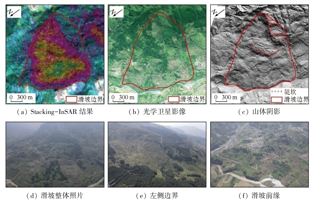 | 图9 干溪拉达滑坡综合遥感识别与现场调查照片 |