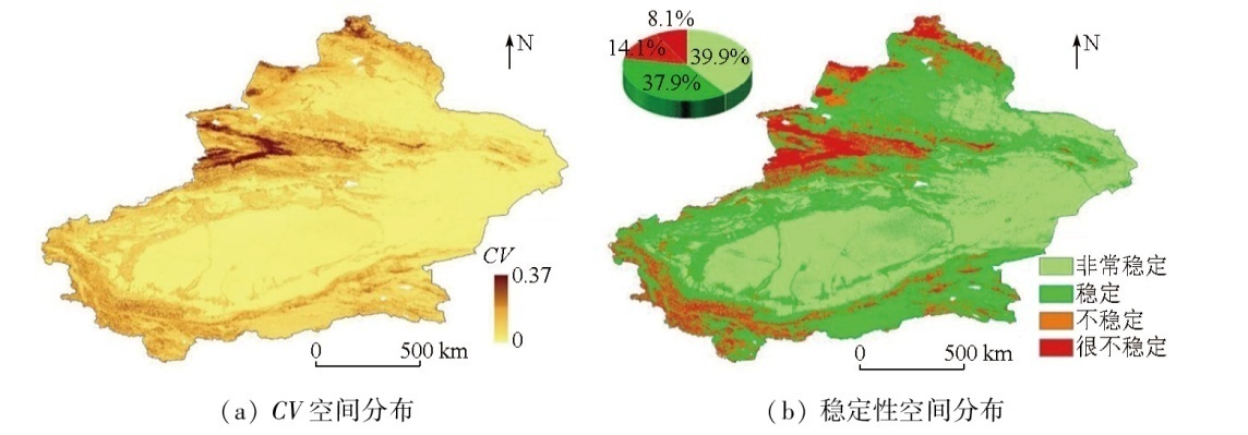 | 图9 EVI变异系数及其空间稳定性示意图 |