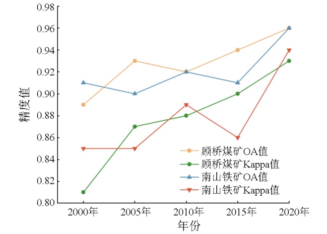 | 图3 顾桥煤矿和南山铁矿土地利用分类精度 |