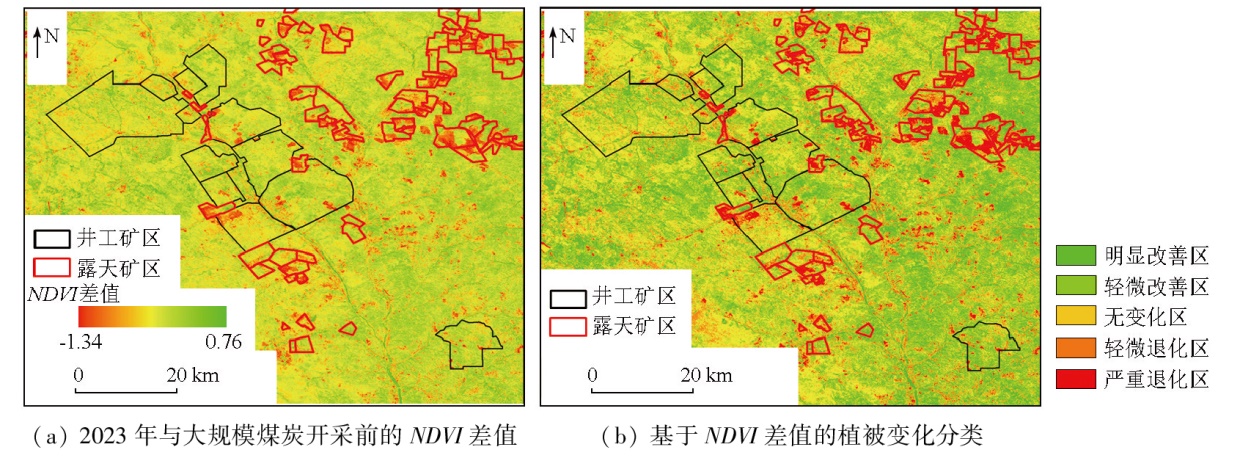 | 图5 2023年相比大规模煤炭开采前植被变化的空间分布 |