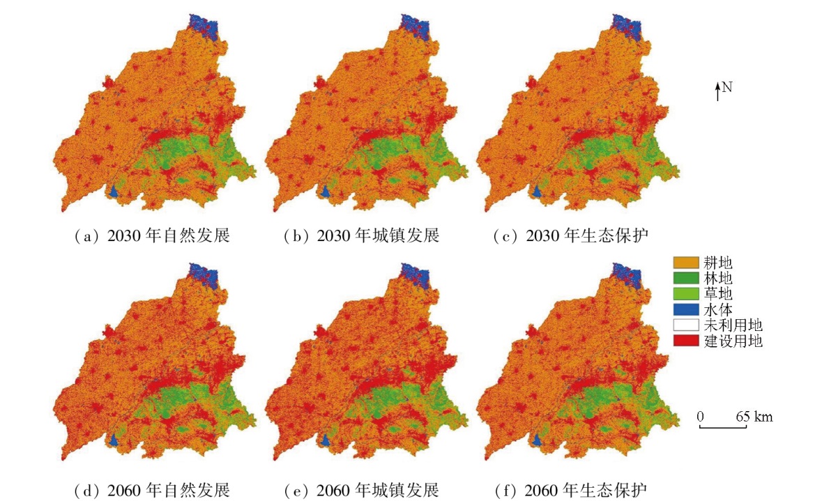 | 图5 2030年和2060年济南都市圈土地利用各地类空间分布及面积 |