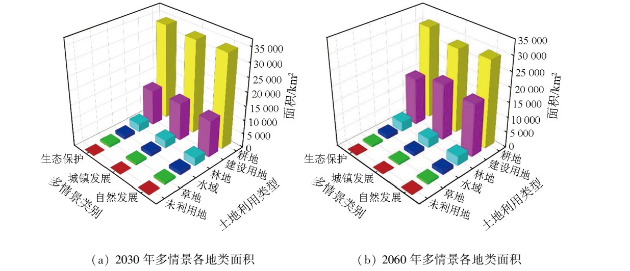 | 图6 2030年和2060年济南都市圈多情景各地类面积 |