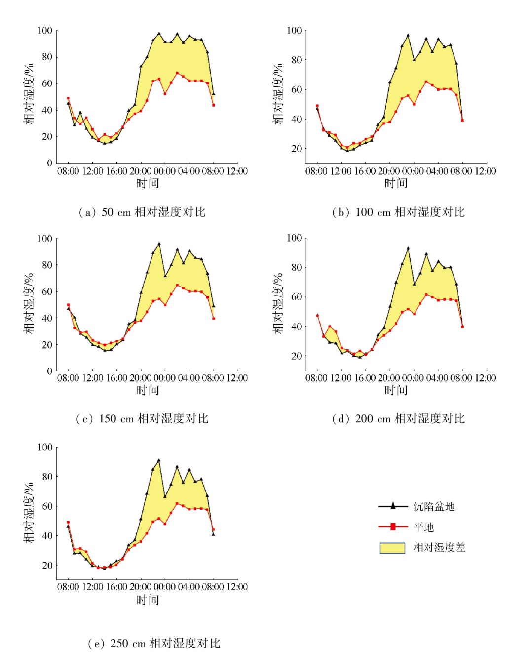 | 图9 沉陷盆地和平地相对湿度日变化 |
