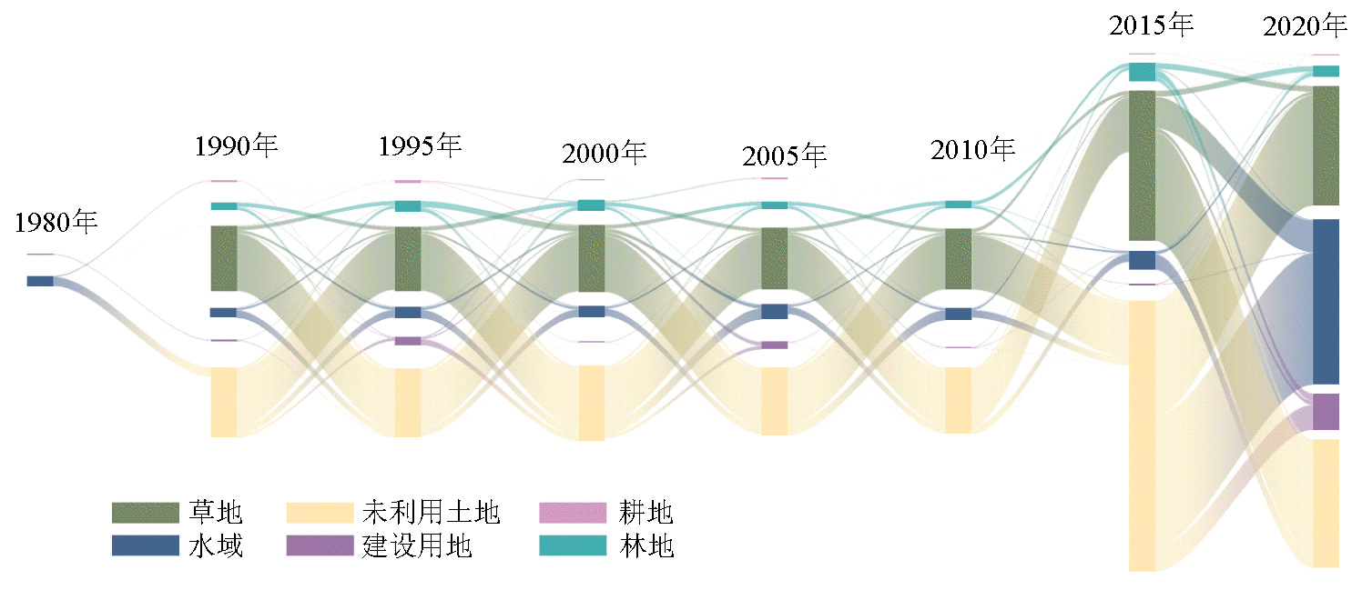 | Fig.6 Trajectory of land use transfer in the Golmud River basin from 1980 to 2020 |