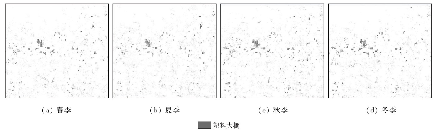 | Fig.6 Plastic greenhouses extracted from different season images using the proposed method in the study area |
