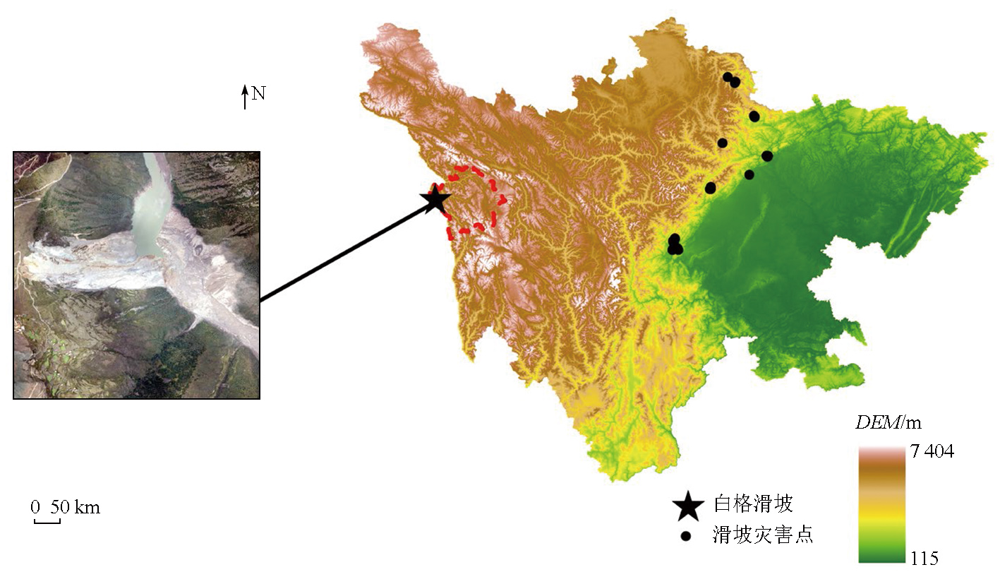 | 图1 四川省白格地区及周边滑坡灾害分布图 |
