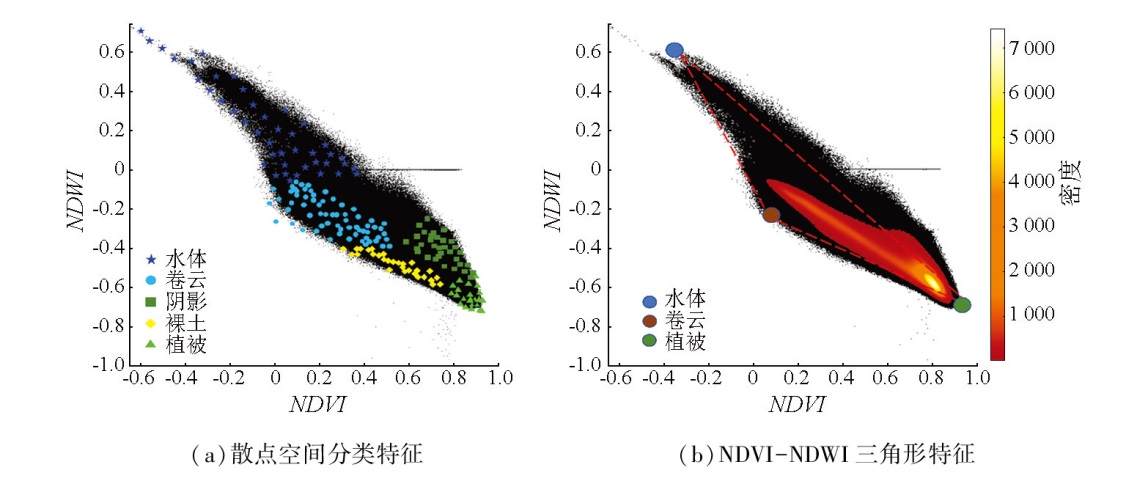 | Fig.5 Feature space scatter plot of NDWI-NDVI |