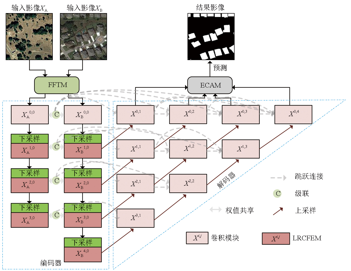 融合FFT和EMHSA的双时相光学遥感影像变化检测网络 |