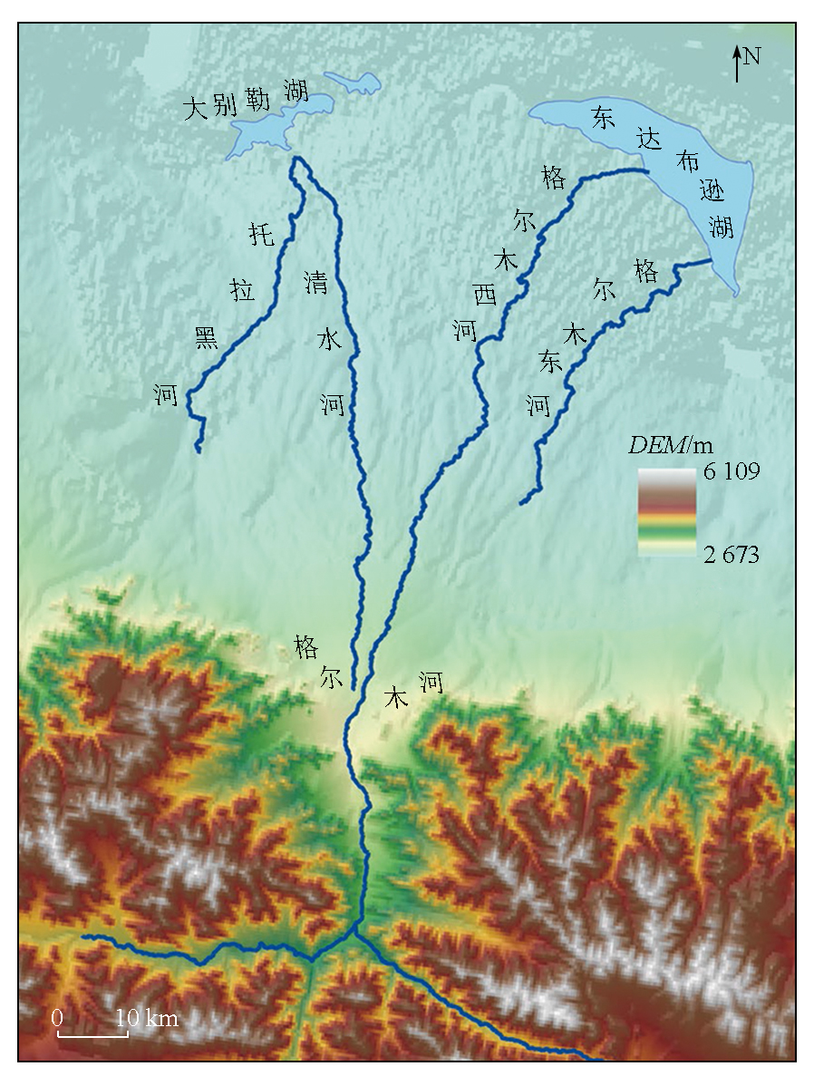 格尔木河流域水系分布图