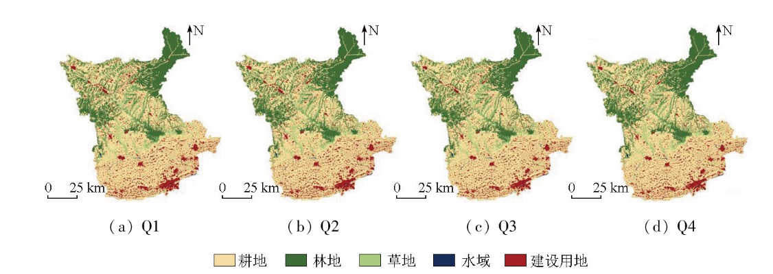 | Fig.5 Spatial distribution of land use under four scenarios in Xianyang City in 2030 |