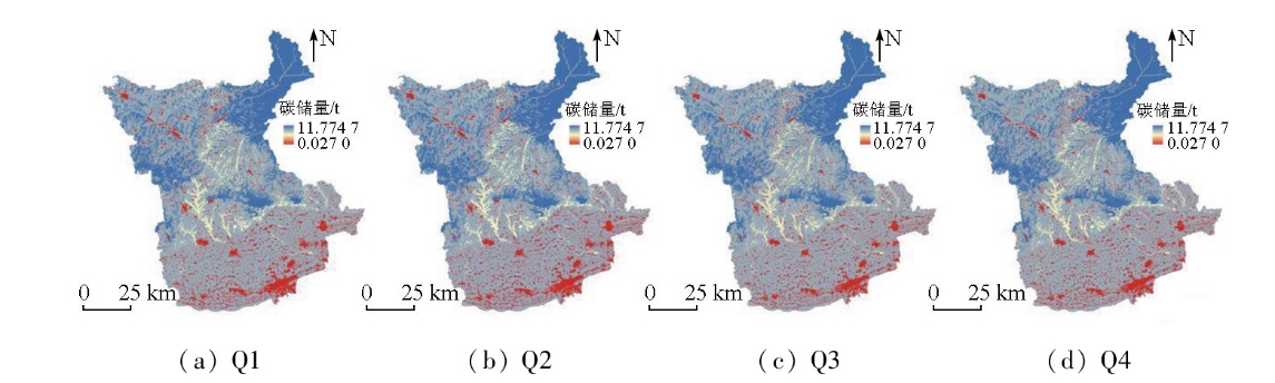 | 图6 咸阳市2030年4种情景下碳储量空间分布 |