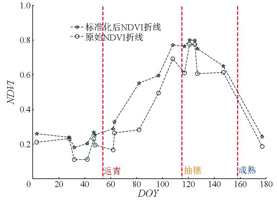 | 图6 标准化前后NDVI时间序列折线图 |