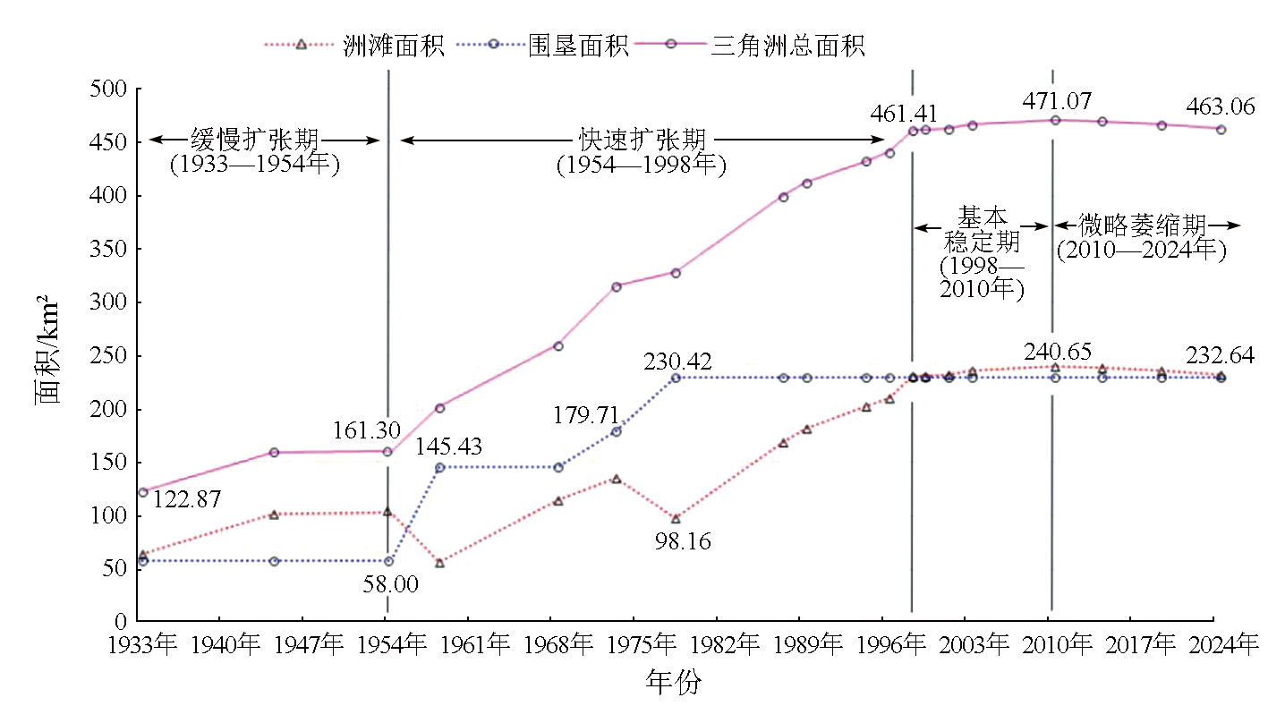 | 图4 1933年以来注滋口三角洲面积时序变化曲线 |