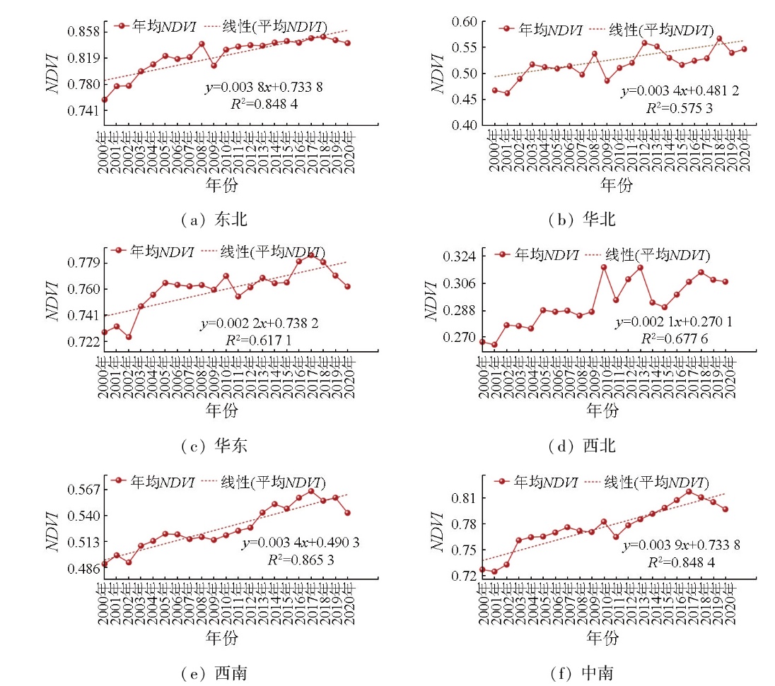 Spatiotemporal variations of 2000—2020 vegetation in China and their time-lag responses to climate |