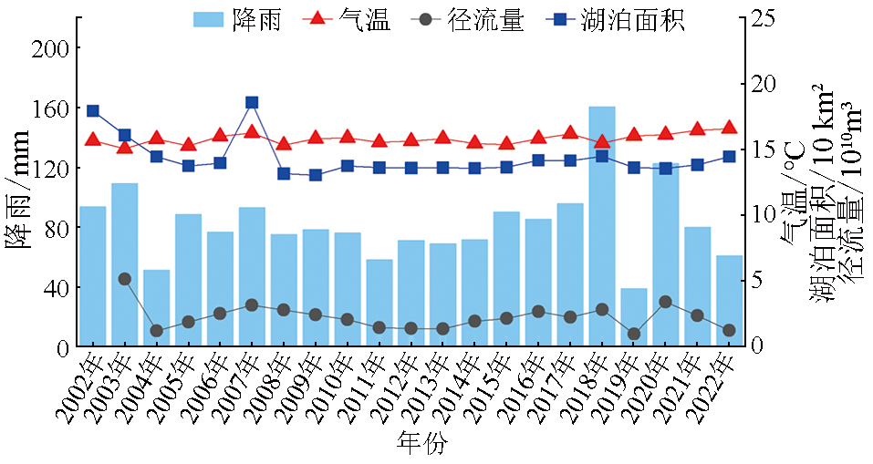 | 图6 2002—2022年淮河流域气温、降雨与径流量变化情况 |