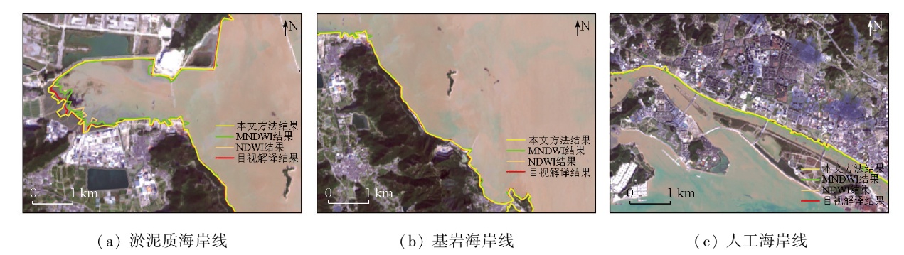 | 图5 不同类型海岸线提取效果对比 |