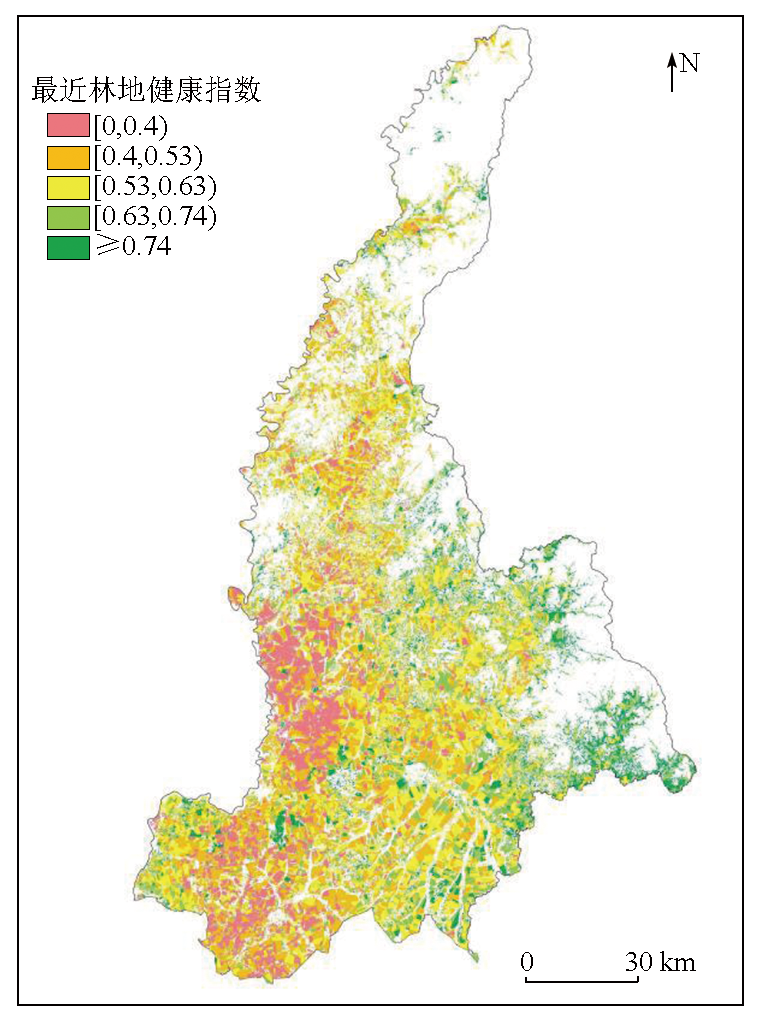 | Fig.7 Forest health index of the nearest neighboring cultivated land in Nenjiang City |