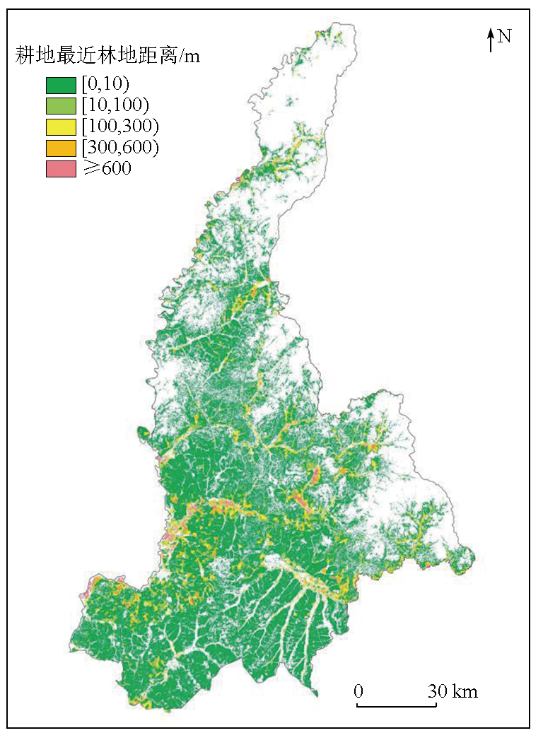 | 图8 嫩江市耕地最近林地距离 |